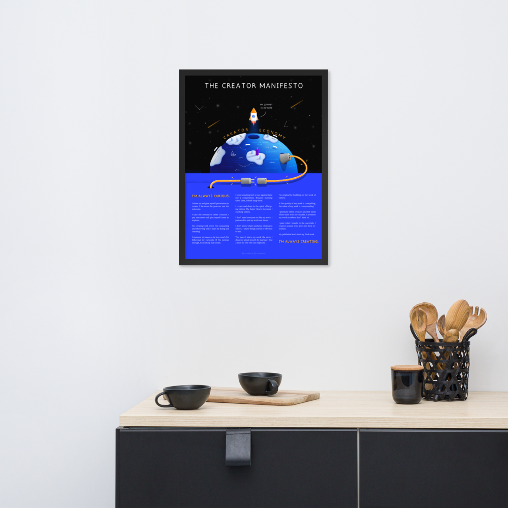 Each purchase of a framed Creator Manifesto provides one unframed manifesto print to a primary school for teachers to hang in their classrooms. Our goal is to inspire as many students as possible to pursue their creative dreams.